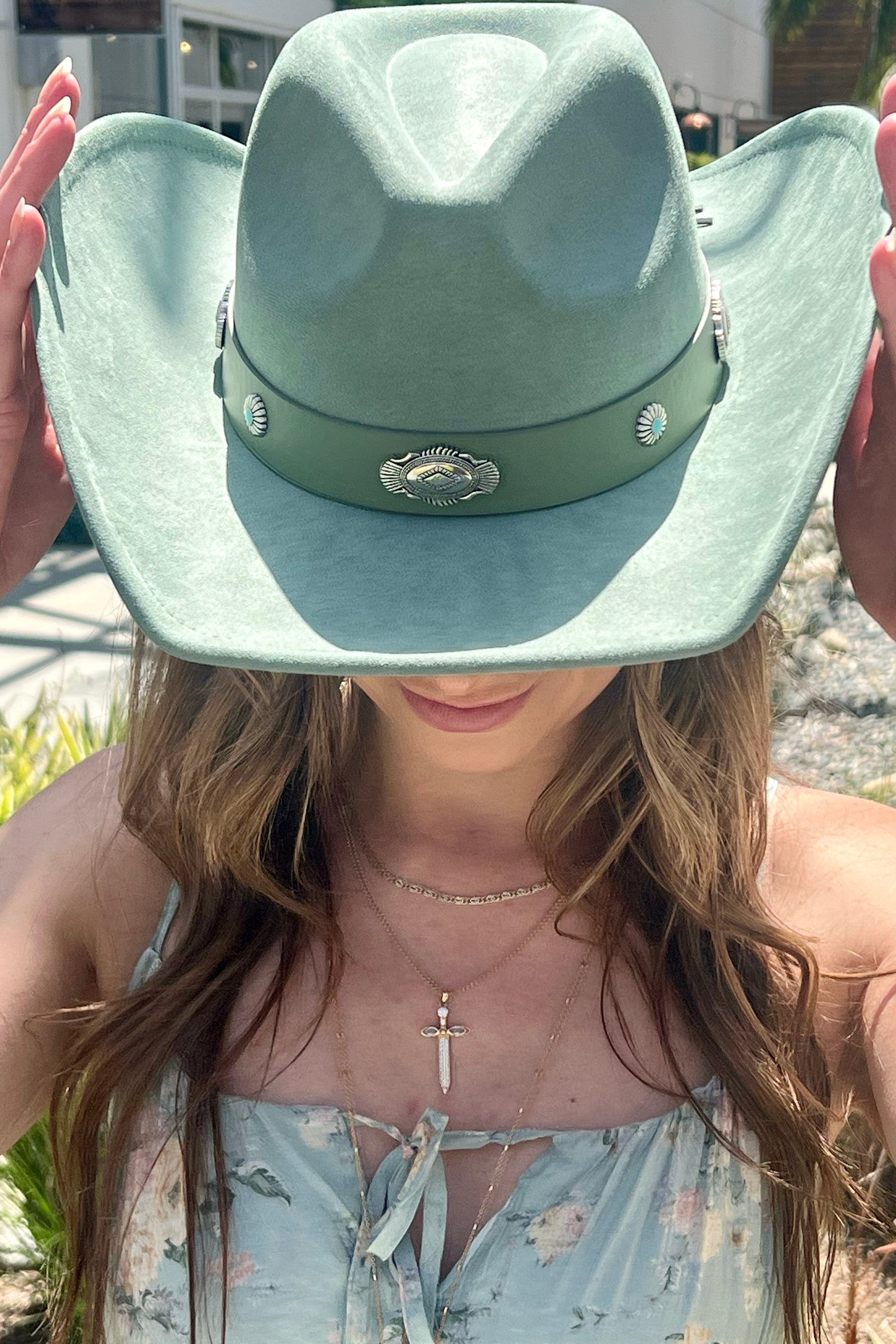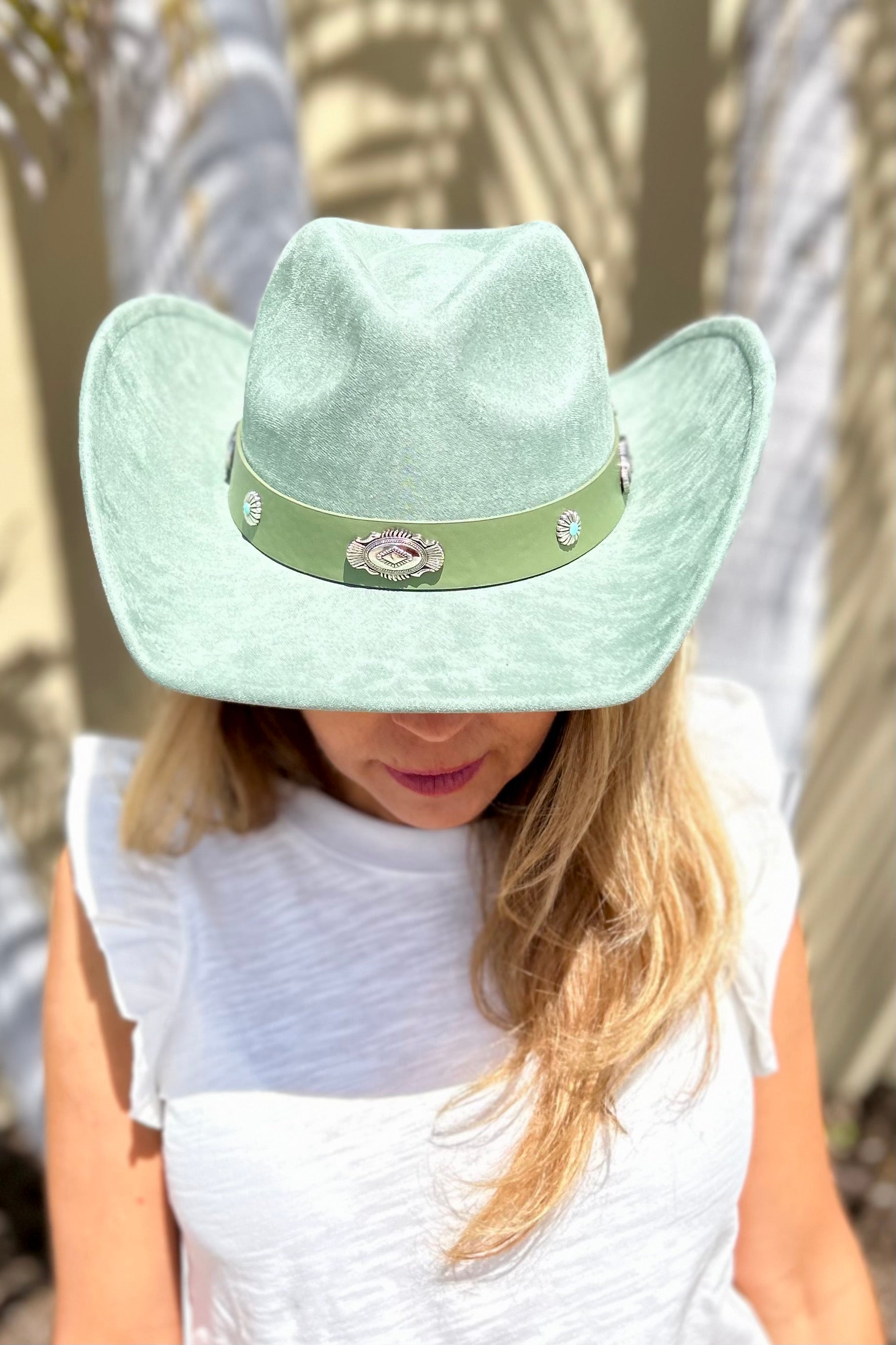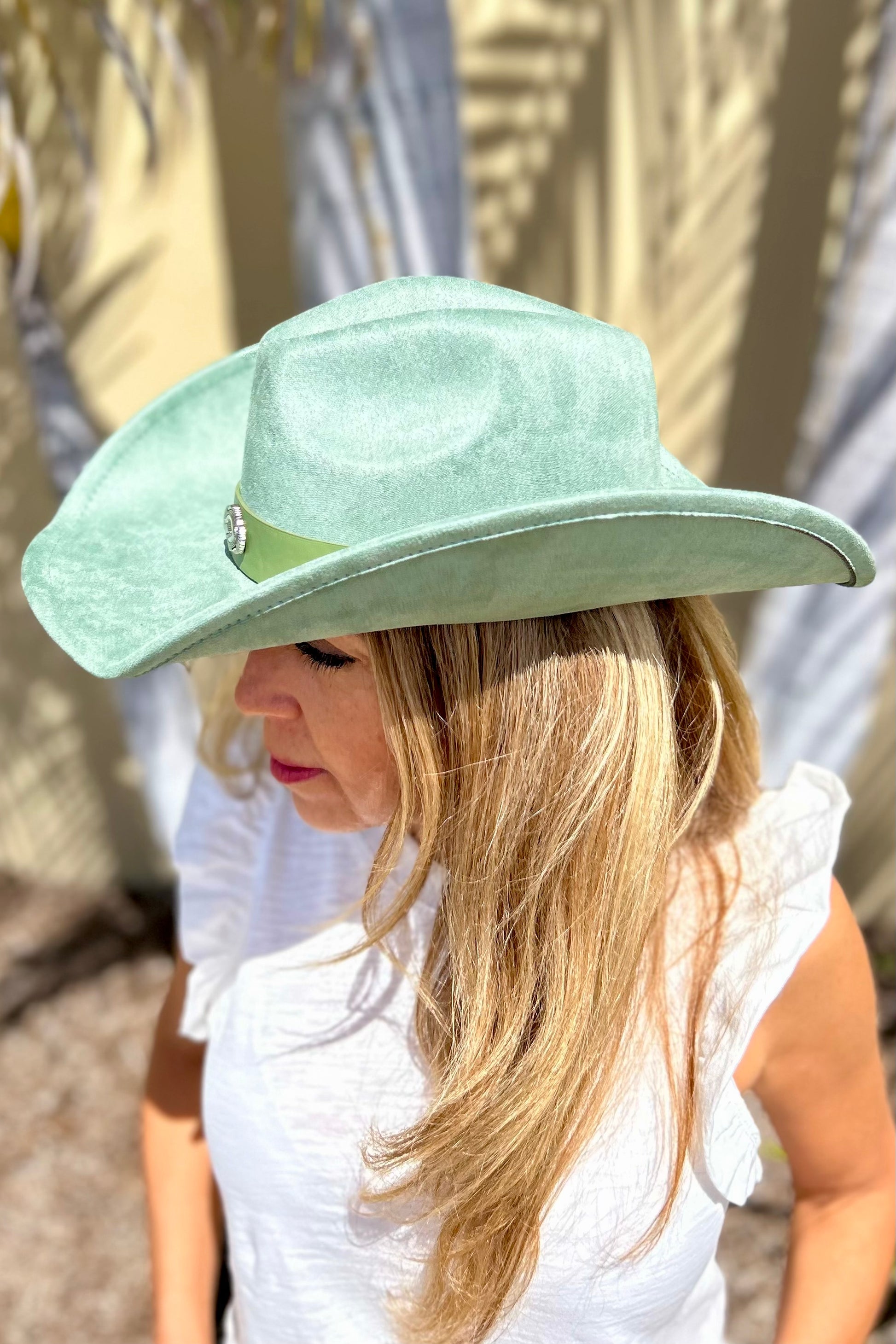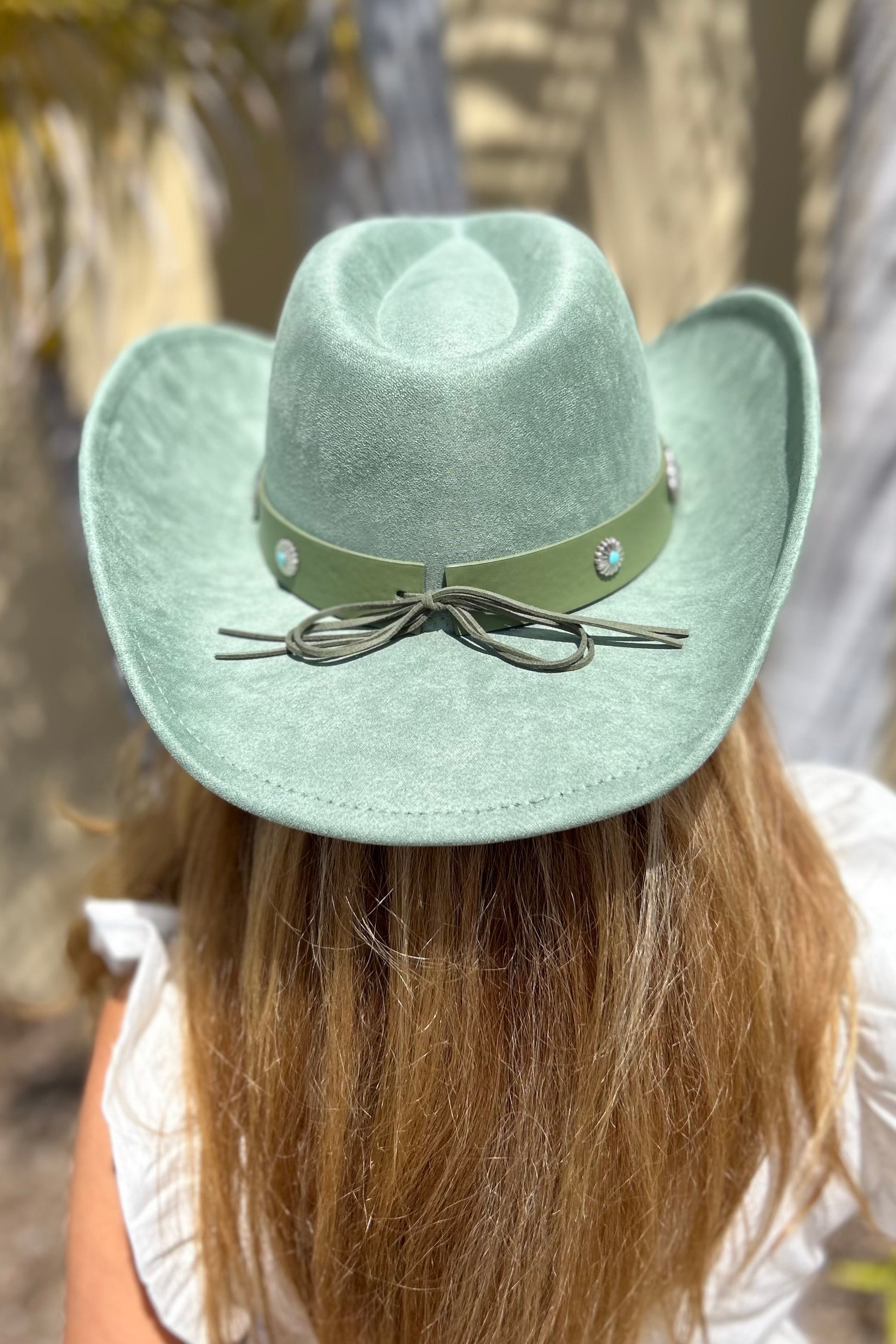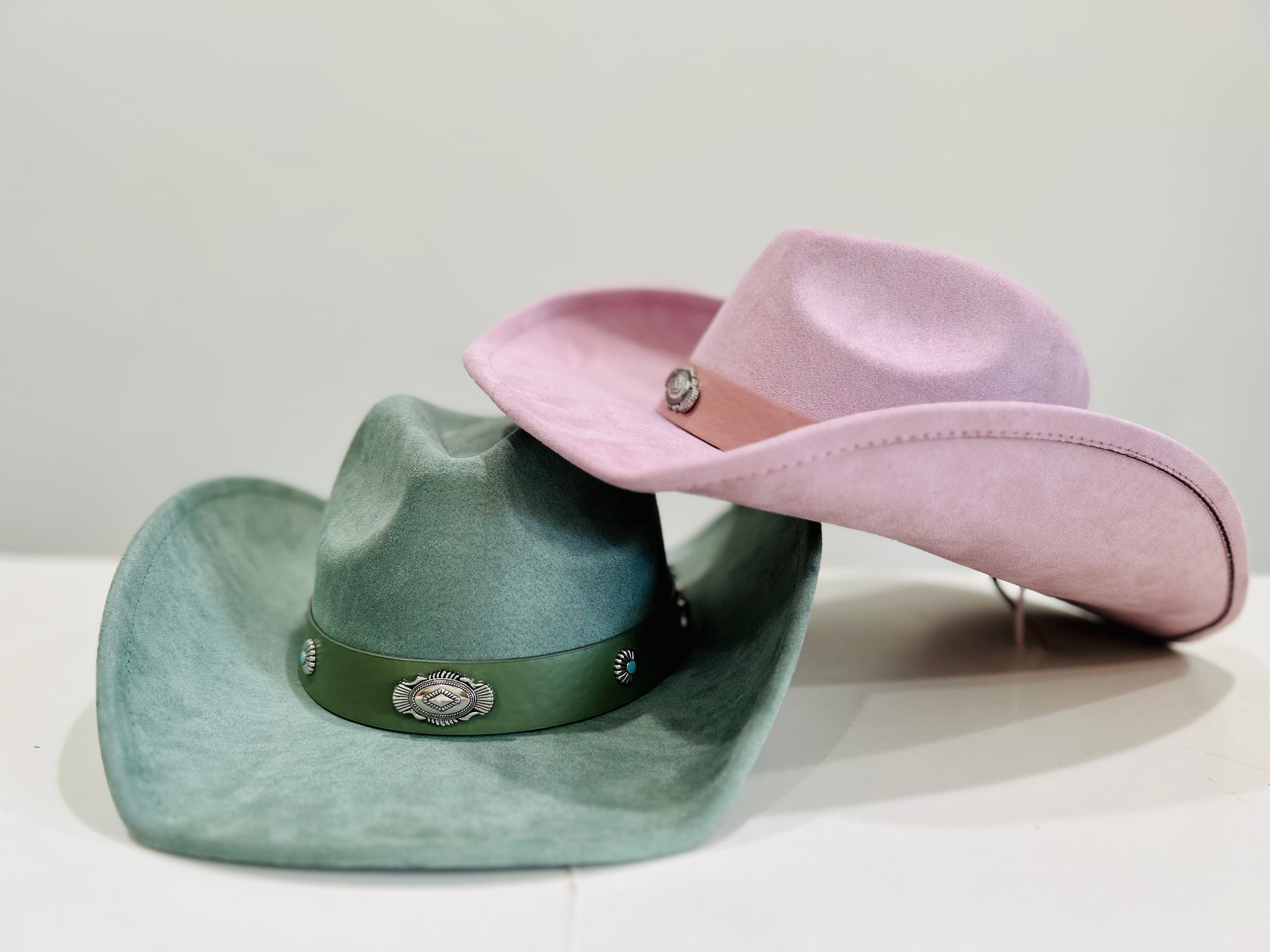 Faux Suede Leather Cowboy Hat with Leather Hat Band
