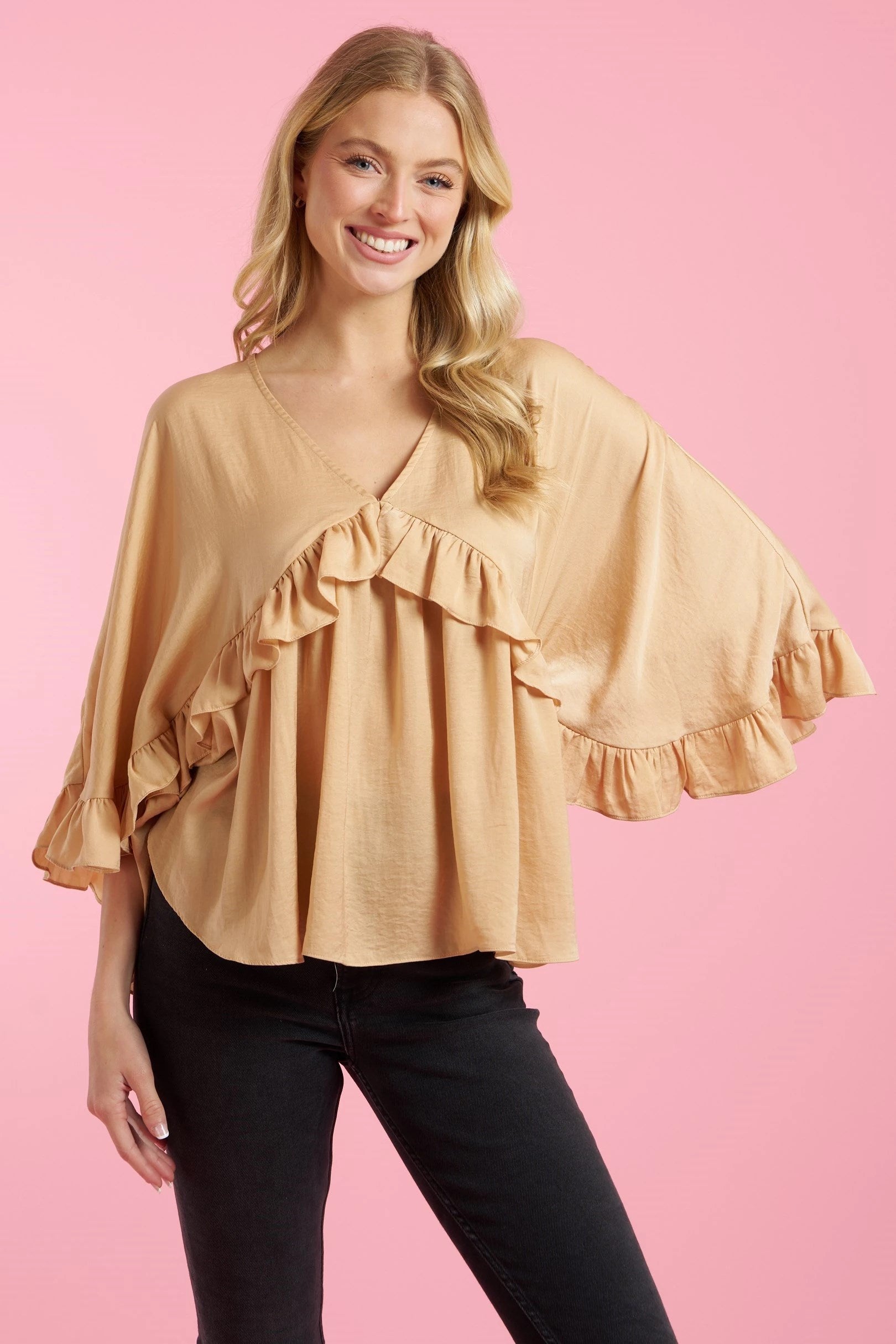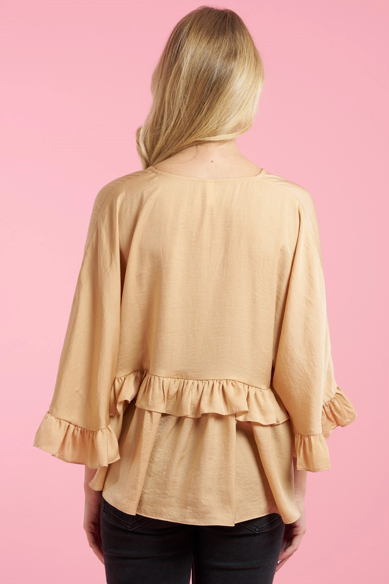 V-neck with ruffle detailing 3/4 sleeve blouse