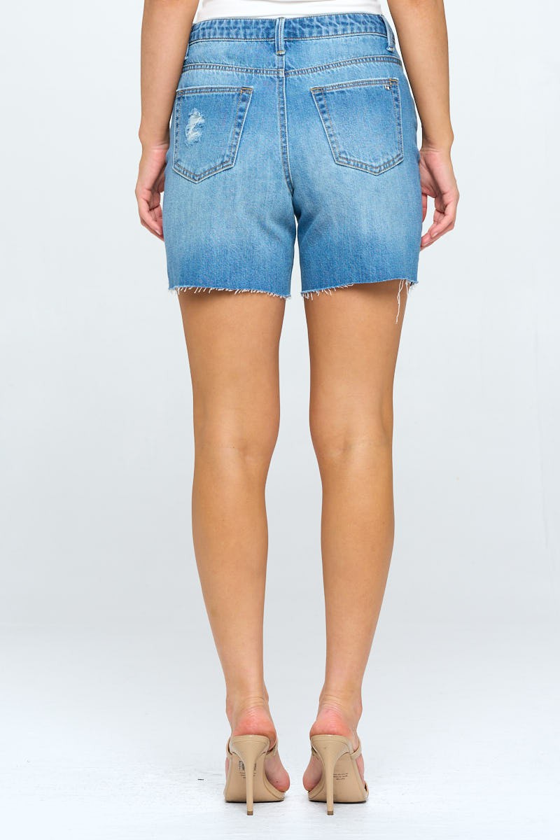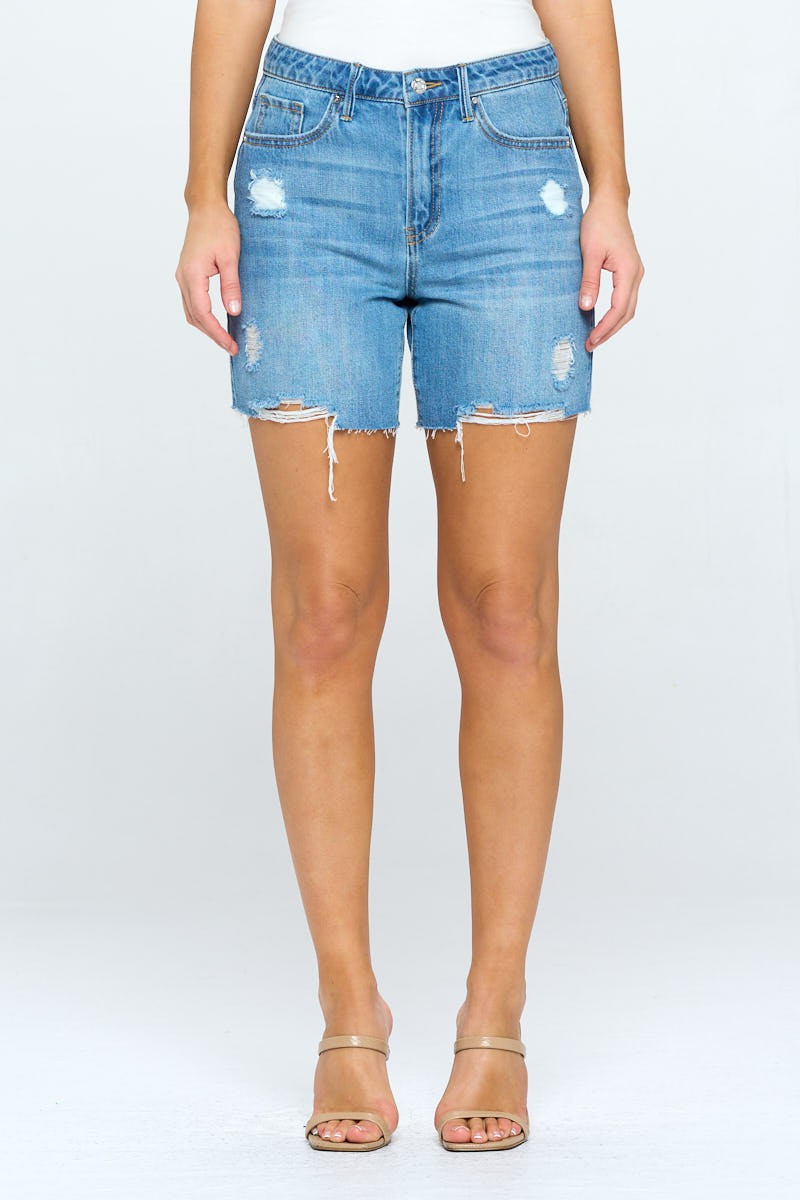 High Waisted 3/4 Mom Shorts with lightly distresed